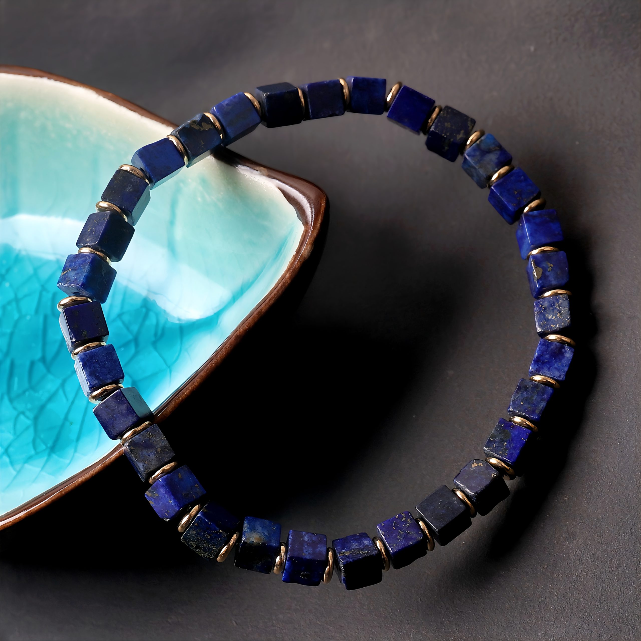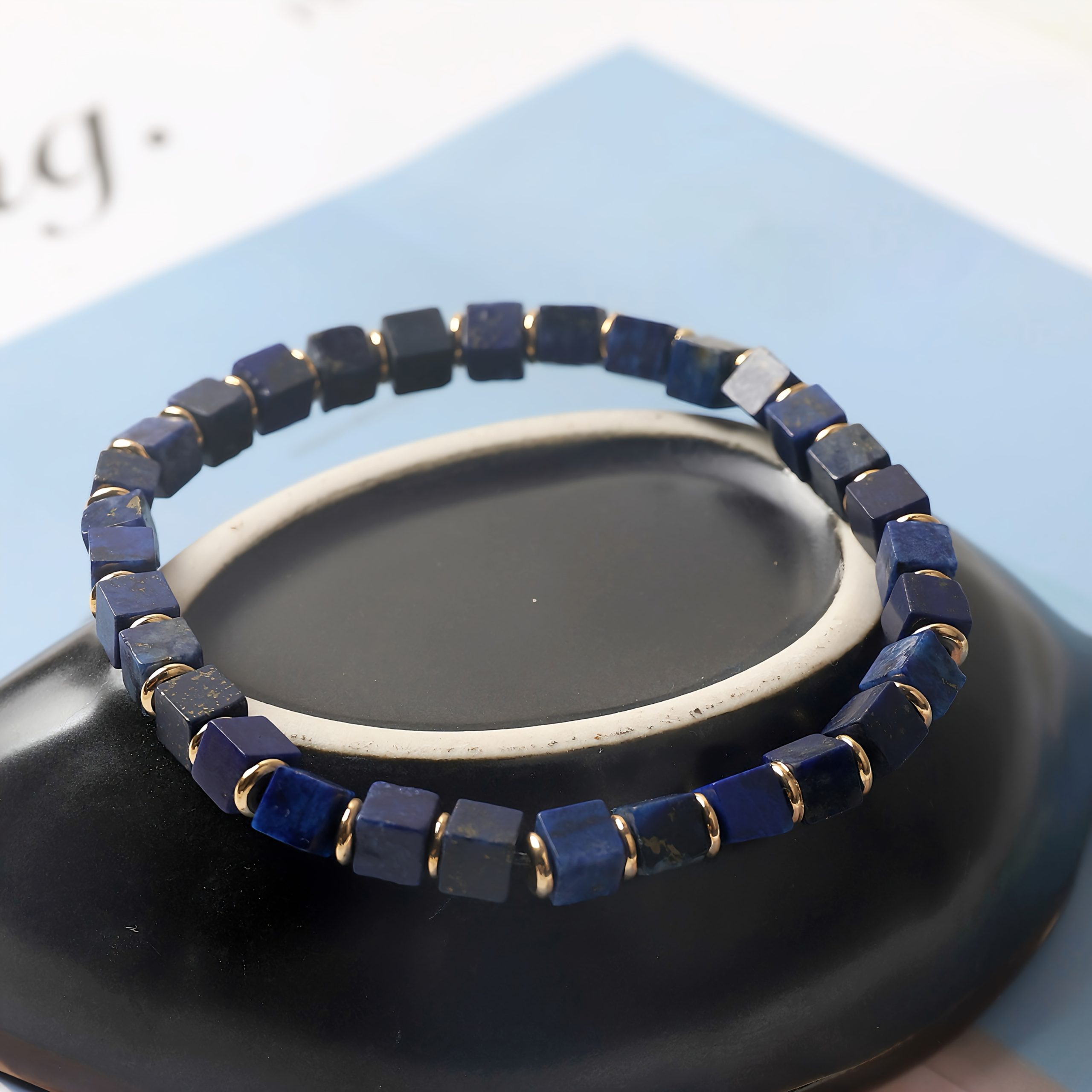 Home bracelet Natural Lapis Lazuli Cube Bracelet (Starry Sky Deep Blue) | Feng Shui Mind-Clarifying Wisdom Bracelet