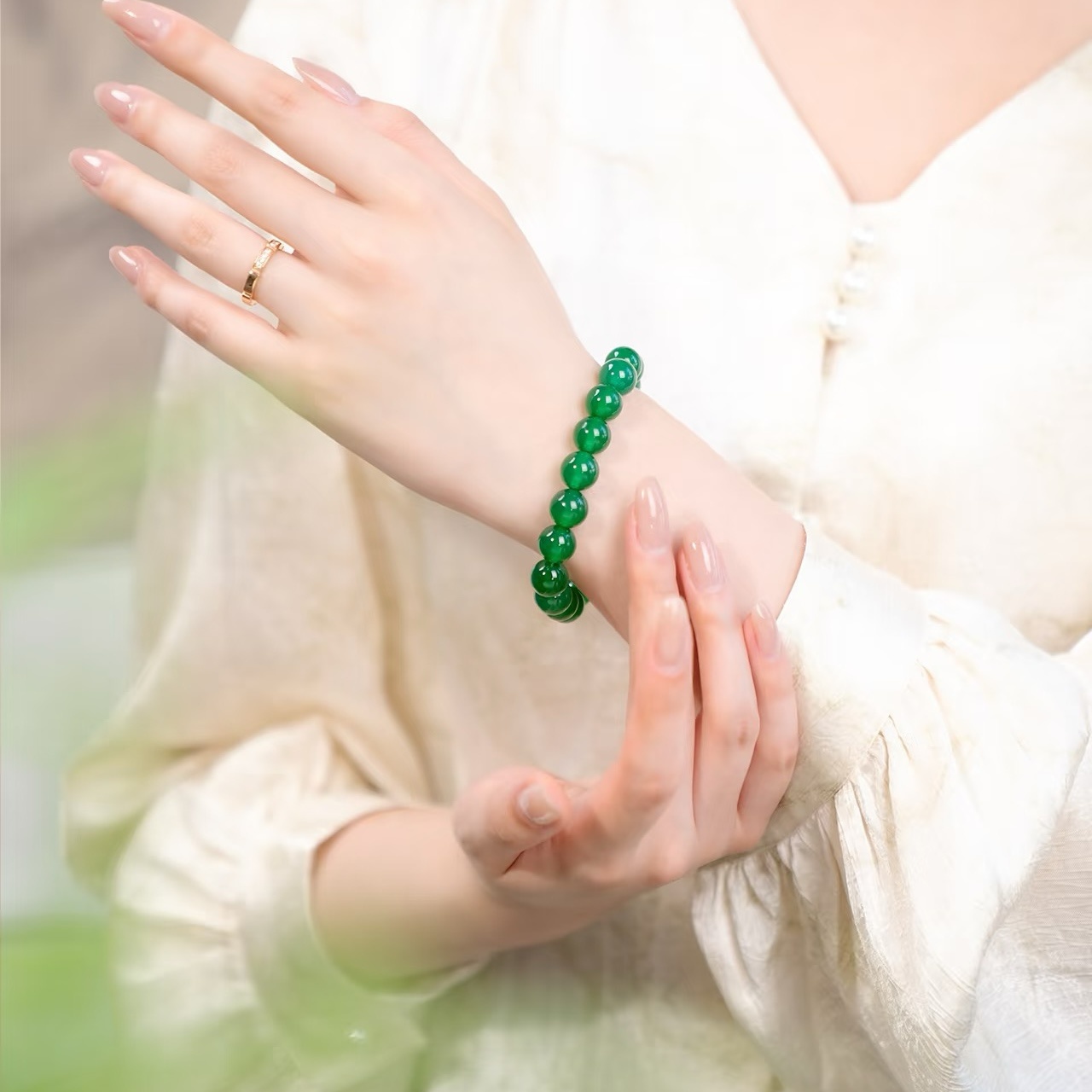 But Wood energy tends to be fleeting, so it needed to be anchored with the “Four Symbols Wood-Stabilizing Formation”: Smooth green agate beads (corresponding to “the Four Symbols + 24 Solar Terms, bringing luck at every turn”) were arranged in the “Azure Dragon position”—every six beads subtly embodied the four energies of “growth, prosperity, breakthrough, and stability,” strung into a wrist-hugging bracelet. The Wood element drives “growth” (sparking new career opportunities), while the Azure Dragon position enables “breakthrough” (clearing blocked paths). The balanced Wood energy benefits all genders: For men, it amplifies their assertive aura to expand business connections; for women, it softens and centers their aura to resolve creative bottlenecks.